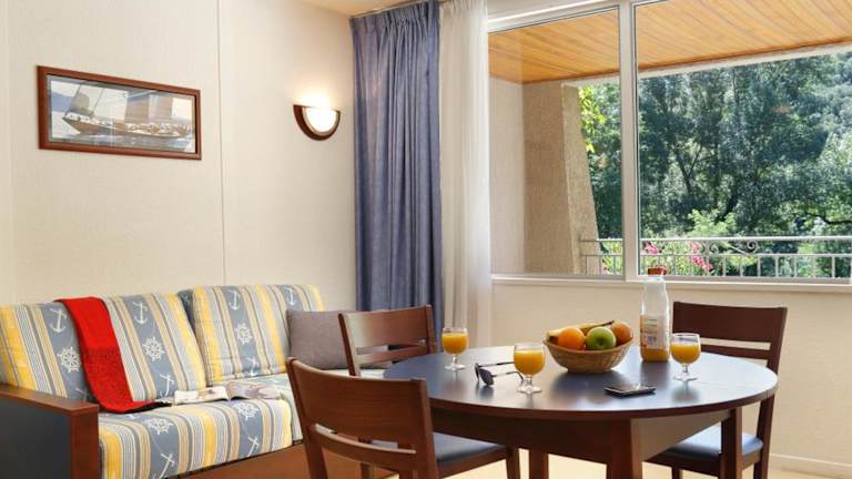 Jedes Studio oder Apartment ist mit einem Flachbild-TV, einem eigenen Bad mit Badewanne oder Dusche sowie einer Küchenzeile ausgestattet. Die Küchenzeilen umfassen Kühlschrank, Mikrowelle und Kochplatten. Die meisten Wohnungen verfügen zusätzlich über eine Terrasse oder einen Balkon.