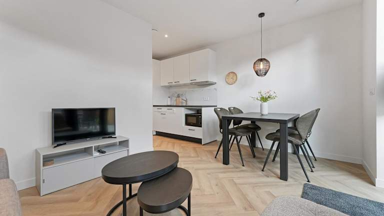 Die Ferienwohnung besteht aus einem Schlafzimmer, einem Wohnzimmer, einer voll ausgestatteten Küche mit Kühlschrank und Kaffeemaschine und einem Badezimmer mit Dusche. Die Unterkunft verfügt über Klimaanlage und einen Flachbild-TV mit Kabelkanälen.