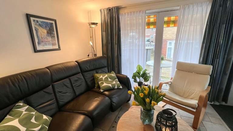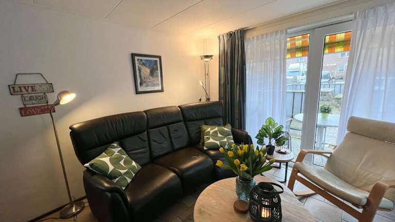 Die Ferienwohnung Vakantiewoning aan de Kust 1 bietet eine Veranda und ein Patio, umgeben von einem Garten und einer Terrasse mit Blick ins Grüne. Kostenloses WLAN ist in der gesamten Unterkunft verfügbar.