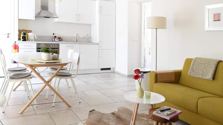 Es ist eine voll ausgestattete Küche vorhanden, die unter anderem einen Kühlschrank, Geschirrspüler, Ofen, Herdplatte, Toaster, Kaffeemaschine und Wasserkocher umfasst. Grillmöglichkeiten stehen ebenfalls zur Verfügung.