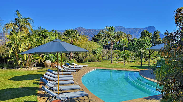 Das Hotel Val d'Or Estate bietet seinen Gästen einen entspannten Aufenthalt inmitten der malerischen Franschhoek-Berge. Mit eleganten Zimmern, einem Außenpool und einer idyllischen Poolterrasse ist das Hotel der perfekte Ort, um sich zu erholen und die umliegende Natur zu genießen. Die Zimmer sind geschmackvoll eingerichtet und bieten einen atemberaubenden Blick auf die Berge und den Garten. Das Hotel bietet auch verschiedene Aktivitäten wie Golf, Forellenangeln und Reiten an. Die nahe gelegenen Städte Paarl und Stellenbosch sind leicht zu erreichen und bieten zusätzliche Einkaufs- und Unterhaltungsmöglichkeiten.