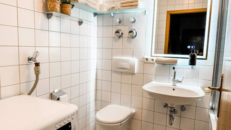 Die Ferienwohnung besteht aus zwei Schlafzimmern, einem Wohnzimmer und einem Badezimmer mit Dusche und Haartrockner. Handtücher und Bettwäsche werden zur Verfügung gestellt.