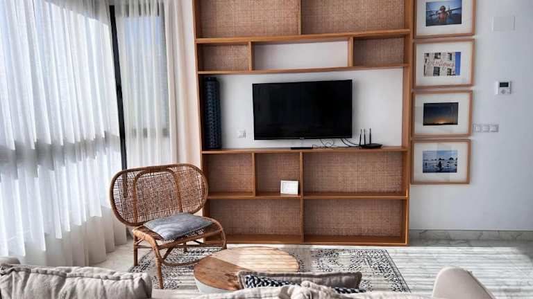 Valencia Luxury - Calma Beach Apartments bietet Übernachtungsmöglichkeiten in einer Unterkunft mit einem ganzjährig geöffneten Außenpool, kostenlosem WLAN, einer Terrasse und einem Restaurant.