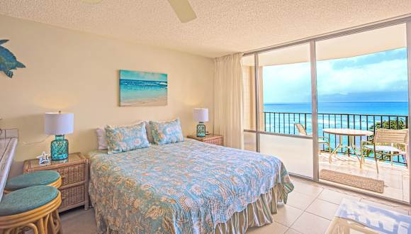 Die Unterkunft umfasst ein Schlafzimmer, ein Badezimmer, Bettwäsche, Handtücher, einen TV mit Kabelkanälen, einen Essbereich, eine voll ausgestattete Küche und einen Balkon mit Meerblick.