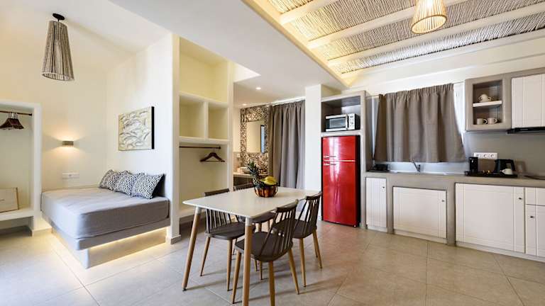 Vammos Luxury Residences bietet elegante Übernachtungsmöglichkeiten mit Terrassen oder Balkonen sowie modernen Annehmlichkeiten. Zu den Einrichtungen gehören ein saisonaler Außenpool, ein gepflegter Garten und Möglichkeiten zur Autovermietung. WLAN ist überall in der Unterkunft kostenlos verfügbar. Die Rezeption erfordert einen Lichtbildausweis beim Check-in und gestattet keine Junggesellen- oder Junggesellinnenabschiede. Es sind keine Haustiere erlaubt.