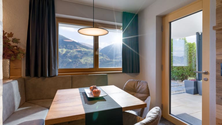 Dieses luxuriöse Apartment in Kaltenbach ist 58 qm und für Paare, Familien oder Freunde geeignet. Die hochwertige Einrichtung mit natürlichem Eichenholz, ausgewählten Textilien und warmen dekorativen Akzenten strahlen mit Gemütlichkeit. Luxury is built in – not tacked on. Unsere Gäste genießen eine elegante Unterkunft in absoluter Privatsphäre. Die Terrasse bietet einen atemberaubenden Blick auf die Zillertaler Bergwelt. Der Sundowner in Van's Place bekommt hier eine ganz neue Bedeutung. Eine eigene Infrarotkabine, tägliche Lieferung von frischen Brötchen (gegen Aufpreis) und unser Engagement sorgen dafür, dass es unseren Gästen an nichts fehlt. Auf dem Grundstück gibt es außerdem kostenloses Parken.