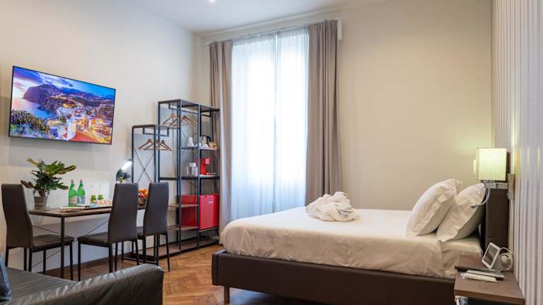 Die Unterkunft bietet klimatisierte Zimmer, die mit einem Schreibtisch, einer Kaffeemaschine, einem Kühlschrank, einer Minibar, einem Safe und einem Flachbild-TV ausgestattet sind. Jedes Zimmer verfügt über ein eigenes Badezimmer mit einem Bidet. Einige Zimmer sind mit einer Veranda oder einem Patio ausgestattet und bieten Aussicht auf die Stadt. Alle Wohneinheiten verfügen außerdem über einen Kleiderschrank.