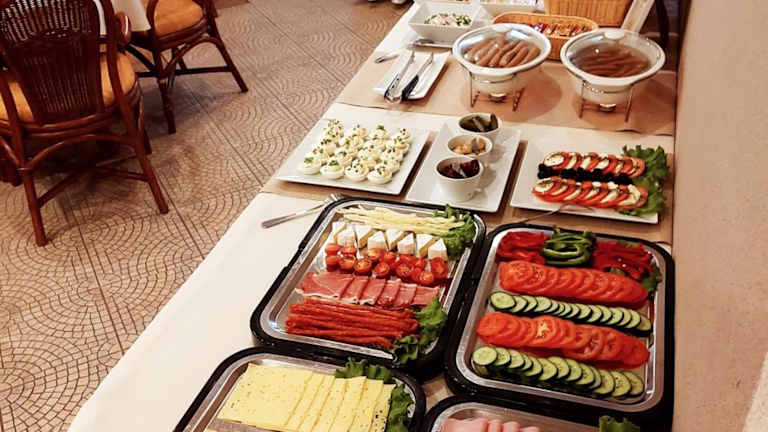 Das Frühstück ist im Unterkunftspreis enthalten und wird jeden Morgen in Form eines Buffets angeboten. Das Hotel arbeitet mit Restaurants in der Umgebung zusammen, die auf Wunsch der Gäste Mahlzeiten direkt zum Hotel liefern können.