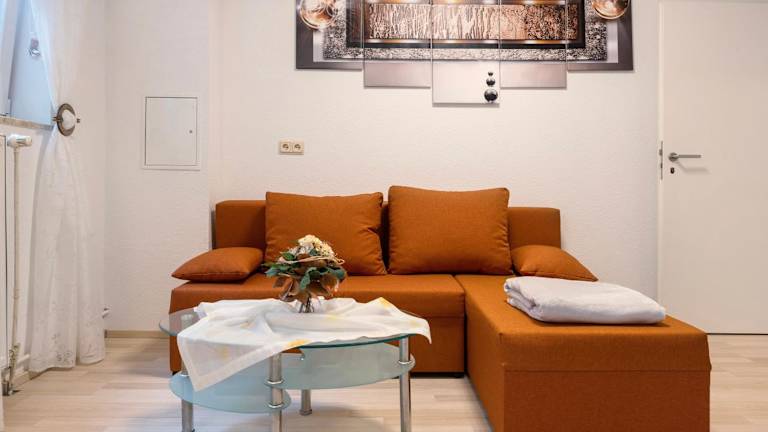 Die Ferienwohnung umfasst ein Schlafzimmer, ein Wohnzimmer mit einem TV und eine voll ausgestattete Küche mit Kühlschrank und Ofen. Es gibt ein Badezimmer, das mit kostenlosen Pflegeprodukten ausgestattet ist. Handtücher und Bettwäsche werden zur Verfügung gestellt.