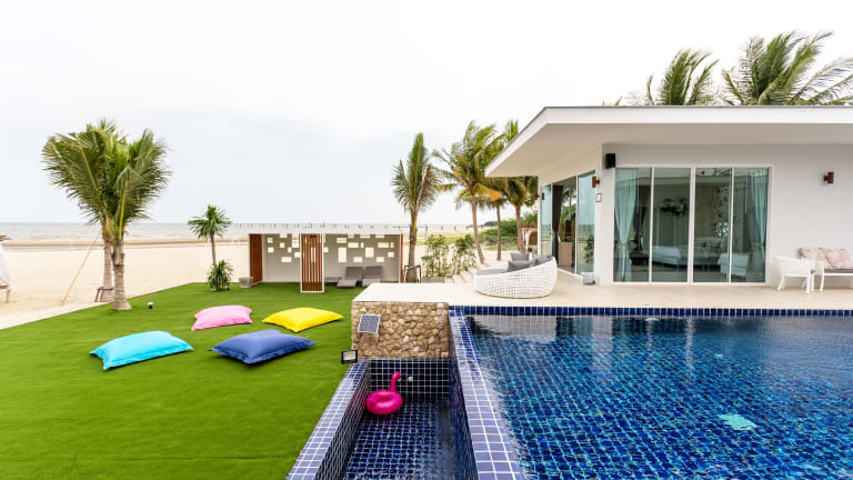 Die Vela Villa Cha-am bietet eine komfortable Unterkunft mit einem Außenpool und kostenfreiem WLAN. Die Villa verfügt über gut ausgestattete Zimmer mit Balkon und Meerblick. Gäste können auch die Gemeinschaftslounge und die Terrasse nutzen. Das Frühstück wird täglich serviert und es stehen verschiedene Aktivitäten wie Billard und Kanufahren zur Verfügung. Die Villa liegt in der Nähe von Sehenswürdigkeiten wie dem Waldpark Cha-am und dem historischen Park Phra Nakhon Khiri. Der Flughafen Hua Hin ist ebenfalls gut erreichbar.