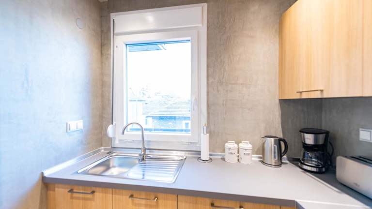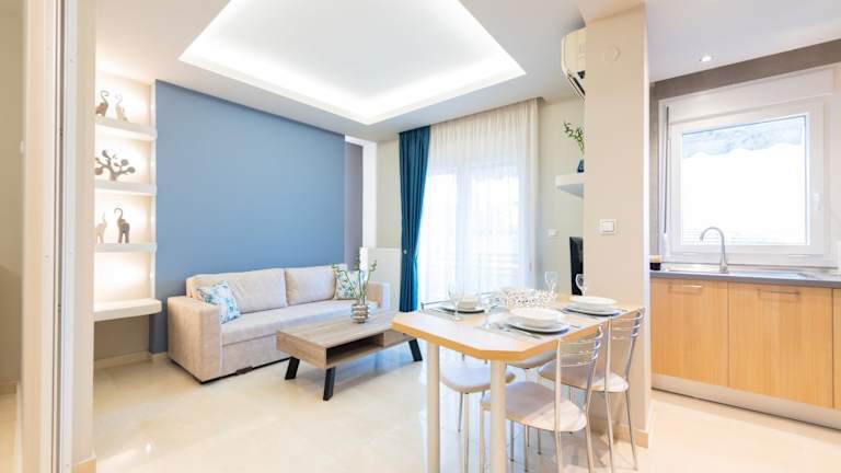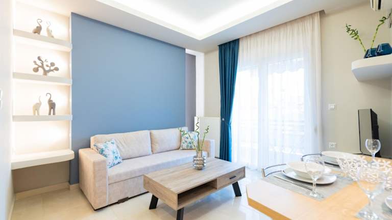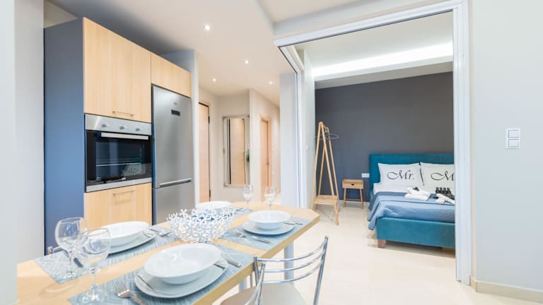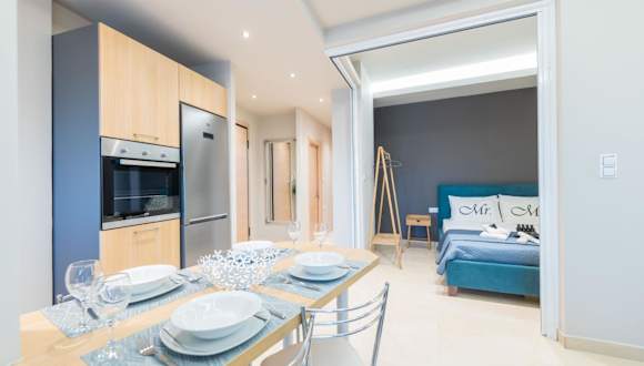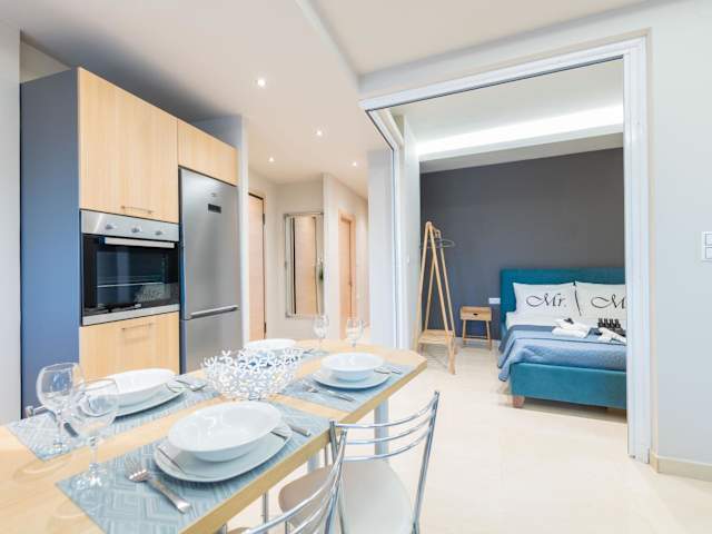 Das Apartment im Hotel Velvet Blue verfügt über zwei separate Schlafzimmer, die für eine angenehme Nachtruhe sorgen. Ein Badezimmer und ein gemütliches Wohnzimmer bieten ausreichend Platz und Komfort für die Gäste. Kostenloses WLAN steht zur Verfügung, um mit der Welt in Verbindung zu bleiben.