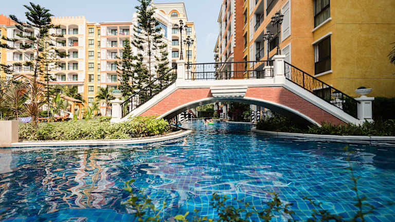 Die Venetian Signature Condo Pattaya ist eine moderne Unterkunft mit einem Balkon, der einen Ausblick auf den Pool und den Garten bietet. Die Ferienwohnung verfügt über Annehmlichkeiten wie einen ganzjährig geöffneten Außenpool, eine Sauna und einen Whirlpool. Alle Bereiche sind Nichtraucherzonen, und es wird ein kontaktloser Check-in/-out angeboten.