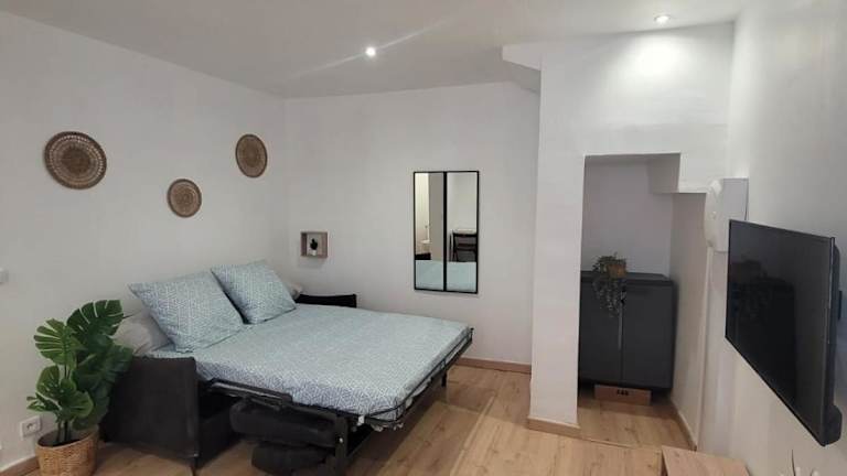 Die Ferienwohnung besteht aus 1 Schlafzimmer und einer Küche, die mit einem Kühlschrank und einem Ofen ausgestattet ist. Ein Flachbild-TV, ein Sitzbereich sowie ein Badezimmer mit Dusche sind ebenfalls vorhanden. Handtücher und Bettwäsche werden bereitgestellt.