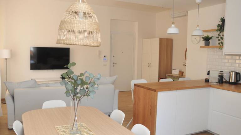 Das Apartment im Verdi Due verfügt über 2 Schlafzimmer, eine voll ausgestattete Küche mit Kühlschrank und Backofen sowie ein modernes Badezimmer mit Bidet. Im Wohnbereich finden Sie einen Flachbild-TV und eine gemütliche Sitzecke. Handtücher und Bettwäsche werden gestellt, um Ihren Aufenthalt so angenehm wie möglich zu gestalten.