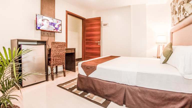 Das Verovino Suites in Cebu City bietet komfortable klimatisierte Zimmer in der Nähe des internationalen Flughafens Mactan Cebu. Mit kostenfreiem WLAN, einem freundlichen 24-Stunden-Rezeptionsteam und einem praktischen Zimmerservice steht Ihrem angenehmen Aufenthalt nichts im Wege. Privatparkplätze sind gegen Aufpreis verfügbar. Die Zimmer sind mit einem gemütlichen Sitzbereich, einem Schreibtisch, einem Flachbild-TV und einem eigenen Bad ausgestattet. In der Umgebung finden Sie Einkaufszentren wie das Gaisano Grand Mall und SM Consolacion, die Sie in kurzer Fahrtzeit erreichen können. Der Flughafen Mactan-Cebu ist ebenfalls gut erreichbar.
