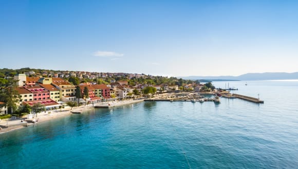 Das Hotel liegt direkt am Meer in Njivice auf der Insel Krk, an der Promenade und nur wenige Gehminuten vom Ortszentrum entfernt. Die Gäste genießen den Blick auf das Meer, die Nähe zum Strand und die angenehme mediterrane Atmosphäre mit zahlreichen Annehmlichkeiten in der Umgebung.