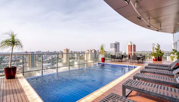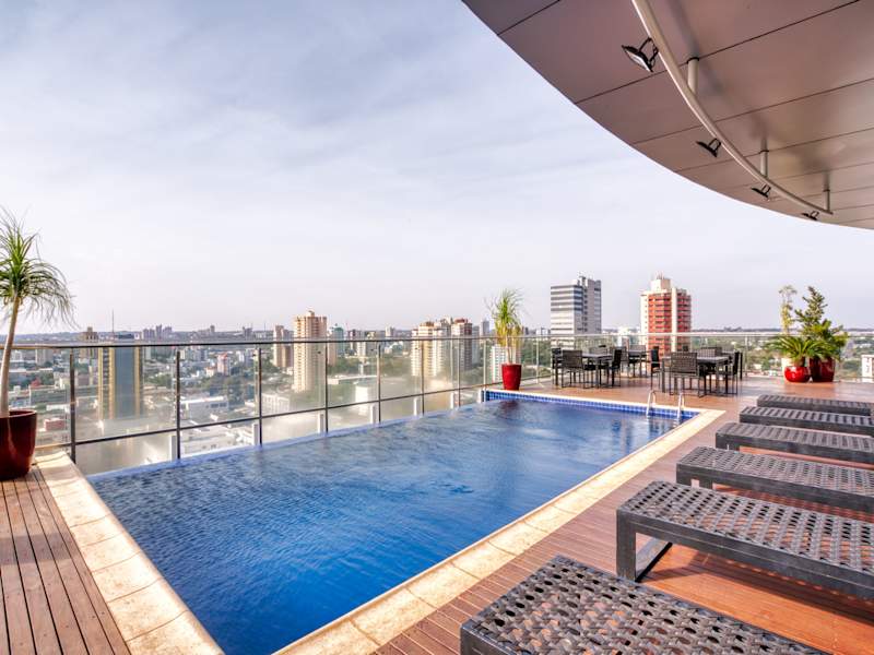 Das Viale Tower Hotel in Foz do Iguaçu bietet seinen Gästen einen modernen Aufenthalt mit einem atemberaubenden Blick auf Brasilien, Argentinien und Paraguay. Entspannen Sie sich im Infinity-Pool, genießen Sie köstliche Gerichte im Restaurant und profitieren Sie von kostenlosem WLAN. Die klimatisierten Zimmer sind stilvoll eingerichtet und verfügen über Annehmlichkeiten wie einen Flachbild-TV und eine Minibar. Das Hotel liegt in der Nähe vieler Sehenswürdigkeiten, darunter der Vogelpark, das Stadtkrankenhaus und die Iguazu-Wasserfälle. Auch der Flughafen Foz do Iguaçu und die Stadt Ciudad del Este sind gut erreichbar.