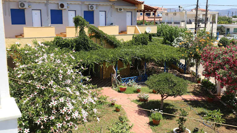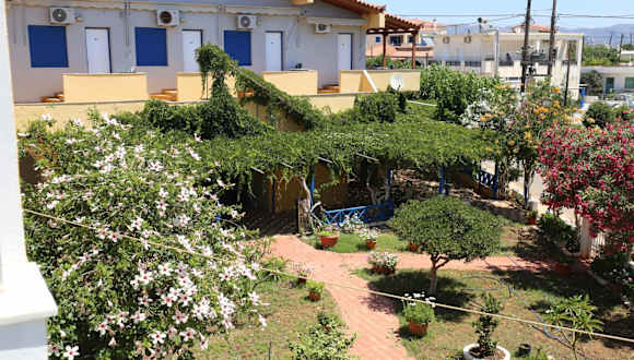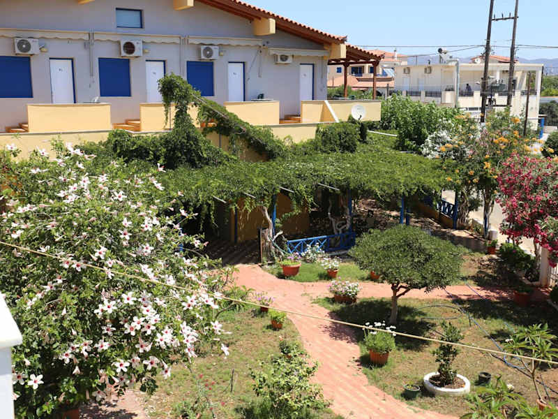 Vias bietet Übernachtungsmöglichkeiten mit einem Garten, kostenlosem Privatparkplatz, einer Gemeinschaftslounge und einer Terrasse. Zu den Dienstleistungen gehört ein griechisches Restaurant und kostenloses WLAN. Die Unterkunft erlaubt keinen Check-in für Personen unter 18 Jahren und gestattet keine Haustiere.
