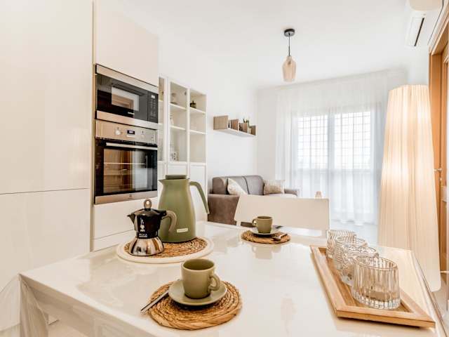 Die Ferienwohnung besteht aus einem separaten Schlafzimmer, einem Wohnzimmer und einer voll ausgestatteten Küchenzeile, die mit einem Kühlschrank und einem Geschirrspüler ausgestattet ist. Zudem gibt es ein Badezimmer. Handtücher und Bettwäsche werden bereitgestellt.