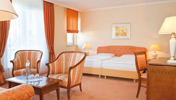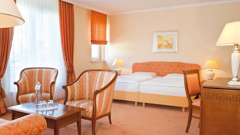 Kunst, Kultur, Komfort. Erfurt: Die Stadt, in der einst Luther studierte und Napoleon residierte. Unweit des mittelalterlichen Stadtkerns können auch Sie kaiserlich residieren – und zwar im Victor's Residenz-Hotel Erfurt. Hier erwarten Sie großzügige Zimmer und Suiten, erstklassiger Komfort und hervorragender Service. Hotelausstattung: Komfortable Zimmer und Suiten zur Einzel- und Doppelbelegung, mind. 28 qm groß, behindertengerechte Zimmer, teilweise Balkon oder Dachterrasse, gesicherte VIP-Etage, Restaurant, Victor's Stube, Bar, Terrasse, citynah, ruhige Innenstadtlage Besonderheiten: - kostenfreies Telefonieren in alle Fest- und Handynetze vom Zimmeranschluss - weltweit - im gesamten Hotel steht Ihnen kostenlos schnelles WLAN zur Verfügung - 8 Veranstaltungsräume (33 bis 485 qm, für 10 bis 400 Personen) mit Tageslicht und moderner Tagungstechnik - großes Konferenzfoyer - 56 Tiefgaragenparkplätze - 1 Busparkplatz am Hotel - ÖPNV Tickets erwerben Sie bequem an der Hotelrezeption Das Victor's Residenz-Hotel Erfurt ist mit dem GreenSign Nachhaltigkeitszertifikat ausgezeichnet.