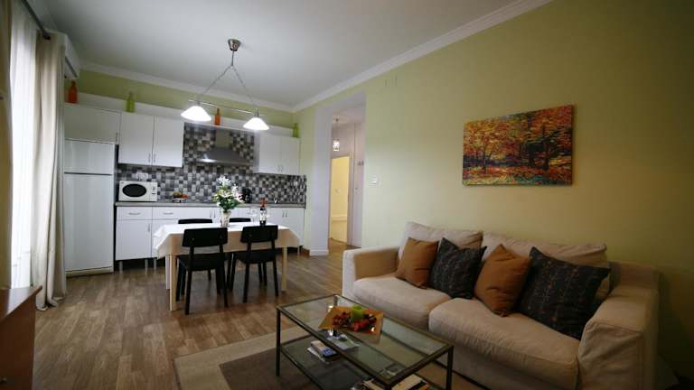 Die Zimmer im Victoria de Alba House sind modern und komfortabel eingerichtet. Jedes Apartment verfügt über eine voll ausgestattete Küche mit einem Kühlschrank und einer Mikrowelle, so dass die Gäste ihre eigenen Mahlzeiten zubereiten können. Ein gemütlicher Sitzbereich lädt zum Entspannen ein und ein Flachbild-TV sorgt für Unterhaltung. Die klimatisierten Zimmer bieten zudem kostenfreies WLAN und eine Terrasse, auf der die Gäste die Sonne genießen können.