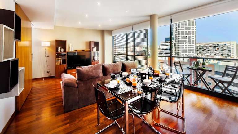Die geräumigen Apartments des Victoria Diagonal Mar Barcelona bieten Ihnen ein komfortables Zuhause auf Zeit. Jedes Apartment verfügt über eine voll ausgestattete Küche mit Geschirrspüler, Waschmaschine und Mikrowelle. Ein Balkon bietet zusätzlichen Raum für Entspannung. Die Zimmer sind klimatisiert und mit TV, Safe und WLAN ausgestattet.