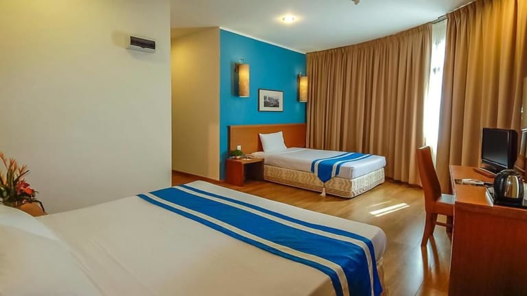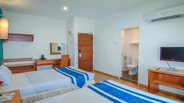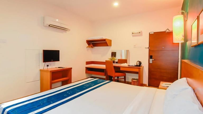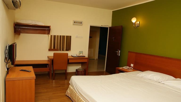 Die Zimmer in der Unterkunft Victoria Inn, Penang sind mit Klimaanlage und einem Schreibtisch ausgestattet.