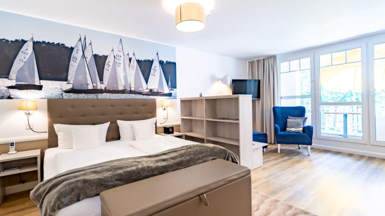 HOTEL VICTORIA SUITES - Maritimes Flair am See Das 4-Sterne Hotel wurde 2017 völlig neu gestaltet im maritimen Stil. Es umfasst 25 Suiten, alle mit Balkon/Austritt oder Terrasse sowie das Restaurant SEASIDE. Das Suiten-Hotel bietet eine ausgezeichnete Unterkunft für einen Wohlfühlurlaub und liegt nur wenige Minuten vom Bahnhof entfernt. Es bietet ein unübertroffenes Preis-Leistungs-Verhältnis und wurde 2024 zum 8. Mal in Folge mit dem HolidayCheck Award ausgezeichnet. Besonders hervorzuheben ist die Nähe zur Bad-Saarow-Therme - direkt nebenan. Ein besonderer Genuss ist ein Sonnenbad im hoteleigenen Park mit Blick über die Wellen des Scharmützelsees.