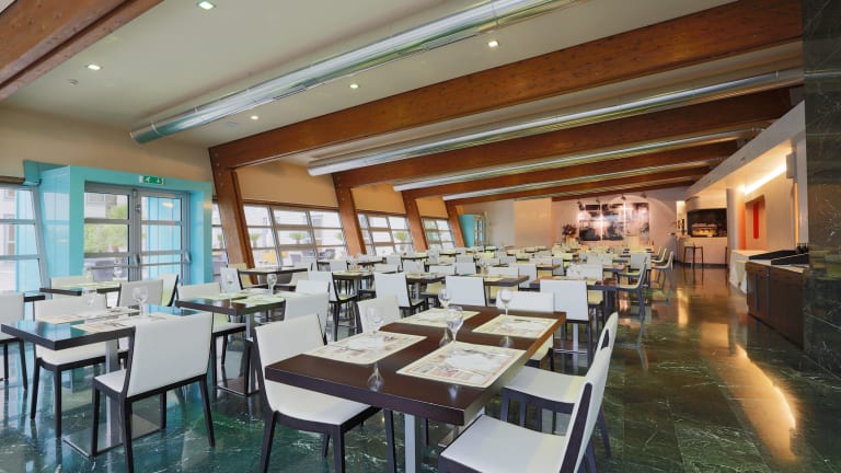 Das helle Restaurant im Victoria Terme Hotel serviert klassische italienische Küche sowie lokale Spezialitäten. Die großen Fenster bieten einen schönen Blick auf die Thermalpools nebenan und schaffen eine angenehme Atmosphäre. Das Hotel bietet ein abwechslungsreiches Frühstücksbuffet, um den Tag gut zu beginnen.