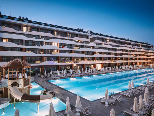 Liebe Gaeste, Das Victory Be Mine Hotel, gehört zu Victory Hotels Kette und auf einer Fläche von 25.000 m² errichtet und ist seit Juni 2020 geöffnet. Es befindet sich 15 km zum Stadtzentrum von Side, 15 km zum Stadtzentrum von Manavgat und 45 km zum Flughafen von Antalya entfernt. Die Anlage hat ein Ultra All Inclusive Konzept. Mit Lokalen und Importierten alkoholischen und nicht alkoholischen Getraenken, *Das Highlight der Anlage ist der Kostenfreie Freizeitpark. Dieser ist in der saison jeden Aben in Betrieb. Durch diesen Park, ist die Anlage eine Beliebtes Familien Hotel. Dieses bedeuetet das in den Ferien viele kinder zu besuch kommen... *Aquapark für Erwachsene und auch Kinder. *Für Strand gaenger haben wir ein fein sandigen Strand, welches eine Bar und auch Snack Bar verfügt. Wir haben kein Steg oder keine eigene Wassersport Station. Wir bieten auch ein kostenfreien shutle service zum Strand. *Für Fein Koster haben wir Osmanisches und Mexicanisches A La Carte Restaurant. *Rund um die Uhr, 24 Stunden Bar. *Taeglich Kostenfreie Carte Dor, Magnum, Toblerone Eis sorten Wir möchten nur Hinweisen das es aus Grund der Lage, keine Grün flaechen in der Anlage vorhanden sind. Für weitere Informationen bitte Zusatzinformationen lesen. Wir wüsnschen einen schönen Urlaub. Victory Be Mine Team.