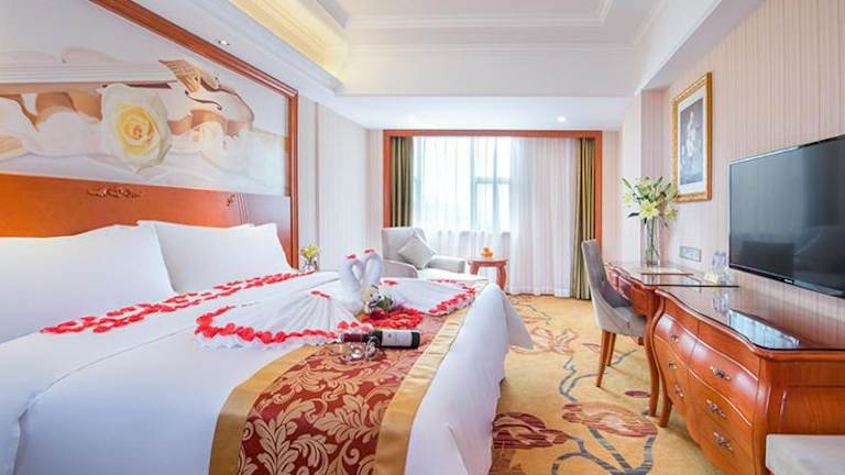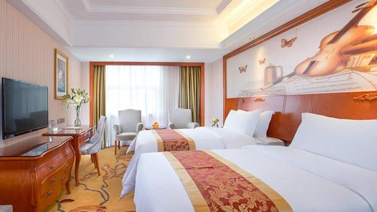 Das Vienna Hotel Shenzhen Bantian South Huancheng Road befindet sich in einer verkehrsgünstigen Lage in Shenzhen. Der Nordbahnhof Shenzhen ist nur 7,1 km entfernt und das Shenzhen-Stadion erreichen Sie nach 12 km. In der Nähe der Unterkunft befinden sich auch das Shenzhen Civic Centre, der Bahnhof Civic Center und das Shenzhen Convention & Exhibition Centre. Der Bahnhof Shenzhen Luohu ist 15 km entfernt und der internationale Flughafen Shenzhen erreichen Sie nach 39 km.