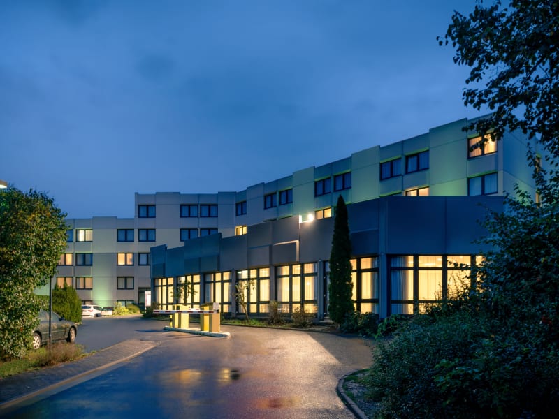 Unser Haus liegt in Kelsterbach unweit des großen Weihers. Fußläufig sind Sie in wenigen Minuten im Waldbebiet mit Wanderwegen, Joggingrouten und einem Trimm-Dich-Pfad. Hinter dem Waldgebiet beginnt bereits das Flughafengelände. Die Flughafenterminals befinden sich 3 km entfernt. Unser Flughafenshuttle fährt von 05:05 Uhr bis 23:20 Uhr bis zum 3 km entfernten Terminal 1 und zurück zum Hotel. Die Fahrt vom Flughafen zum Hotel ist für unsere Gäste kostenlos. Die Fahrt vom Hotel zum Flughafen ist kostenpflichtig. Haltestelle am Airport: Terminal 1, Ankunftshalle B, Ausgang 5. Die Kelsterbacher Innenstadt erreichen Sie fußläufig in 15 Minuten.