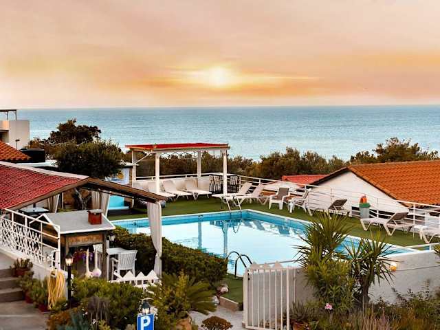 Die View Villas in Hersonissos bieten Ihnen eine ideale Lage nur 3 Gehminuten vom Strand Sarantari entfernt. Die voll ausgestatteten Villen mit Balkon und herrlichem Blick auf das Meer und die Berge sorgen für einen komfortablen Aufenthalt. Genießen Sie den Poolbereich mit Snackbar und entspannen Sie sich auf dem Spielplatz oder dem Basketballplatz. Das Hotel ist auch ein guter Ausgangspunkt, um die Umgebung zu erkunden, einschließlich der antiken Stätte Knossos.