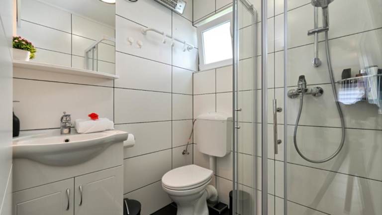 Das Ferienhaus ist klimatisiert und umfasst zwei Schlafzimmer sowie ein Badezimmer mit Dusche und Whirlpool. Es sind Handtücher und Bettwäsche vorhanden. Die voll ausgestattete Küche beinhaltet einen Kühlschrank und eine Kaffeemaschine.