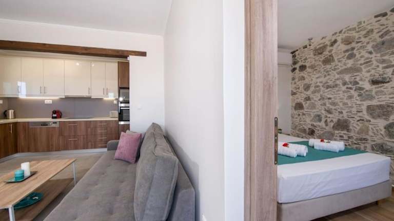 Das klimatisierte Apartment der Vigla Apartments No.3 bietet ein separates Schlafzimmer, ein Wohnzimmer, eine voll ausgestattete Küche mit Kühlschrank und Backofen sowie ein Badezimmer. Handtücher und Bettwäsche werden gestellt, um Ihren Aufenthalt so angenehm wie möglich zu gestalten. Das Apartment ist geschmackvoll eingerichtet und bietet alle Annehmlichkeiten, die Sie für einen komfortablen Aufenthalt benötigen. Kostenfreies WLAN ist ebenfalls vorhanden, sodass Sie jederzeit mit Ihren Lieben in Kontakt bleiben können.