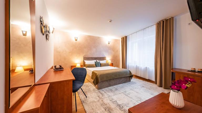 Das Hotel Vila Diana - Poiana Brasov ist der ideale Ausgangspunkt für einen unvergesslichen Aufenthalt in Poiana Braşov. Mit kostenfreiem WLAN und Parkplätzen bietet die Unterkunft einen komfortablen und zugänglichen Aufenthalt. Die Zimmer sind modern ausgestattet und verfügen über Flachbild-Kabel-TV, einen Safe und eine Minibar. Das freundliche Personal steht Ihnen rund um die Uhr zur Verfügung und hilft Ihnen gerne bei allen Anliegen. Die Lage des Hotels ist perfekt für Skifahrer, da es in der Nähe von verschiedenen Skipisten liegt. Auch die Seilbahn Capra Neagra ist nur einen kurzen Spaziergang entfernt.