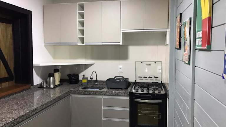 Das Apartment in der Vila do Chaves - Pousada foi matéria no G1 bietet einen komfortablen Wohnbereich mit einer Terrasse, von der aus Sie einen herrlichen Blick auf die Stadt genießen können. Das Apartment verfügt über einen Flachbild-TV und eine voll ausgestattete Küche mit Kühlschrank und Backofen. Das private Badezimmer ist mit einem Bidet ausgestattet. Kostenloses WLAN ist in der Unterkunft verfügbar.