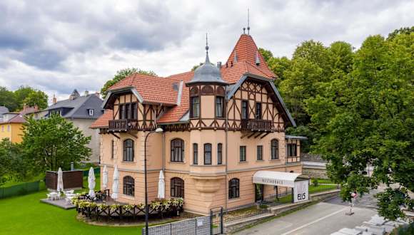 Die Vila ELIS in Jeseník bietet eine komfortable Unterkunft mit kostenfreiem WLAN und Parkplätzen. Der Garten und der Kinderspielplatz sorgen für Unterhaltung und Entspannung. Die Zimmer sind gut ausgestattet und bieten einen schönen Blick auf die Berge. Genießen Sie Ihr Frühstück im Restaurant des Hotels und entspannen Sie in der Infrarotsauna. Die Lage der Unterkunft ist ideal für Aktivitäten wie Skifahren und der Bahnhof Jeseník ist nur wenige Schritte entfernt.