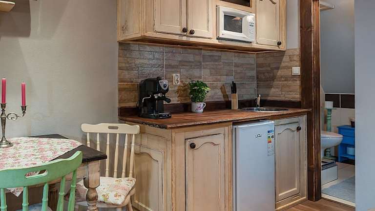 Die Unterkunft bietet eine Gemeinschaftsküche und ermöglicht somit die Zubereitung eigener Mahlzeiten. Auf Anfrage wird ein Frühstück ins Zimmer serviert. Das nächstgelegene Restaurant befindet sich in fußläufiger Entfernung von 5 Minuten.