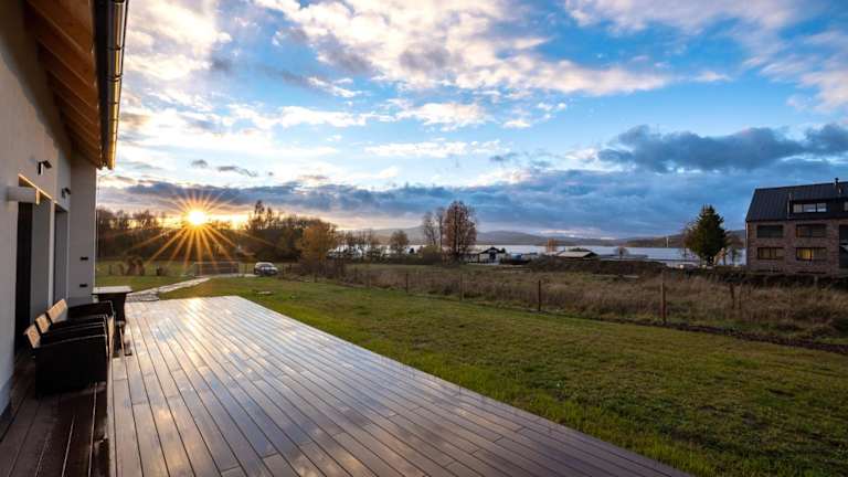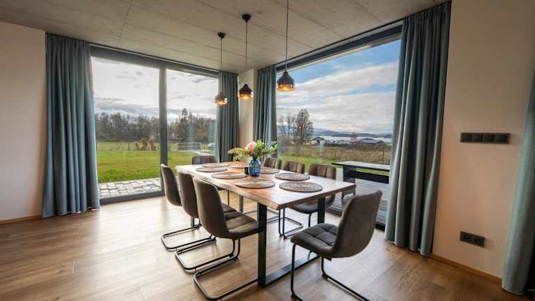 Die Vila Jestřábí s výhledem na Lipno befindet sich in Černá v Pošumaví und bietet einen Blick auf den Stausee Lipno. Die Umgebung ist ruhig und lädt zu verschiedenen Aktivitäten in der Natur ein. Schloss Krumau ist 22 km entfernt und Náměstí Přemysla Otakara II sowie der Flughafen Budweis sind ebenfalls in der Nähe.