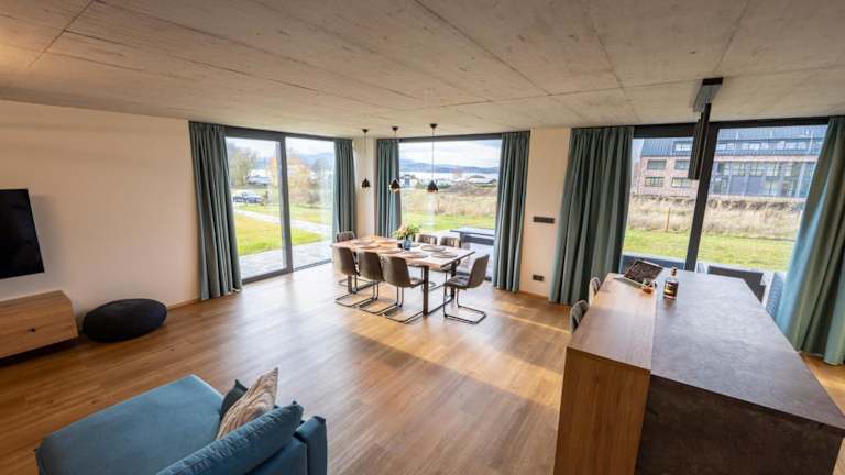 Die Gäste können sich nach aktiven Tagen beim Wandern, Skifahren oder Fahrradfahren im Garten oder in der Gemeinschaftslounge entspannen.
