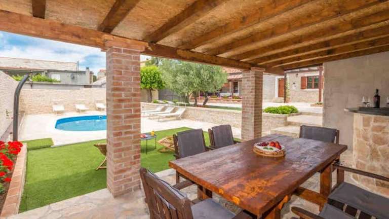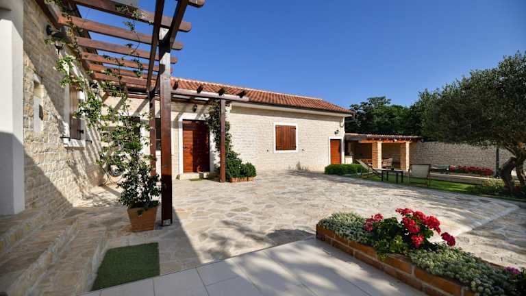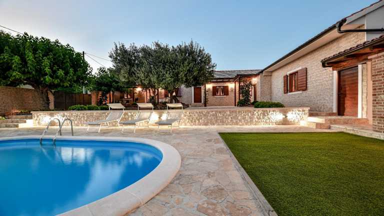 Die Vila Nela in Benkovac ist eine ideale Unterkunft für einen erholsamen und komfortablen Aufenthalt. Die Villa bietet klimatisierte Zimmer mit Balkon und kostenfreiem WLAN. Entspannen Sie am eigenen Pool und genießen Sie den Garten und die kostenfreien Privatparkplätze. Die Villa verfügt über 3 Schlafzimmer, 3 Badezimmer, eine voll ausgestattete Küche und eine Terrasse mit Gartenblick. Die Lage der Villa ermöglicht es Ihnen, verschiedene Attraktionen wie den Yachthafen Kornati und das Biograd Heritage Museum zu besuchen. Der Fun Park Mirnovec und der ACI-Yachthafen Vodice sind ebenfalls leicht erreichbar. Der Flughafen Zadar ist nur 31 km entfernt und ein kostenpflichtiger Flughafentransfer wird angeboten.