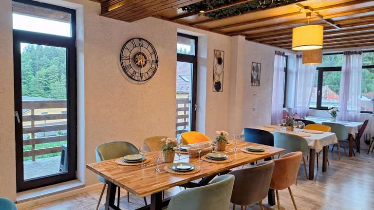 In der Vila PANORAMIC Busteni steht Ihnen eine Gemeinschaftsküche zur Verfügung, in der Sie Ihre eigenen Mahlzeiten zubereiten können. Alternativ können Sie auch die umliegenden Restaurants erkunden und lokale Spezialitäten genießen.