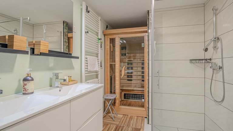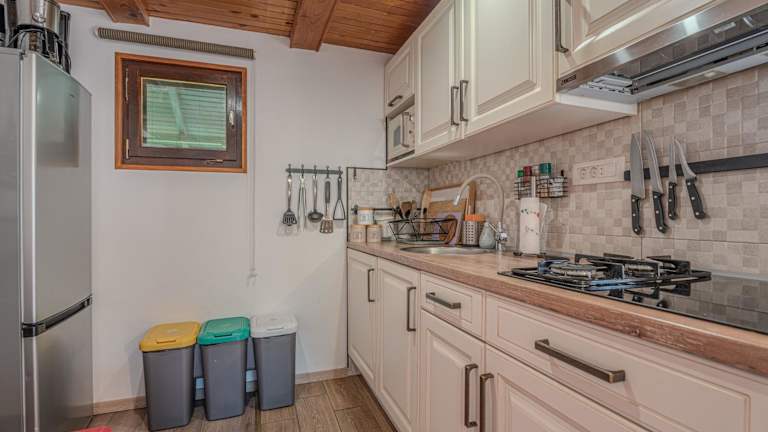 Das Ferienhaus umfasst ein Schlafzimmer, ein Wohnzimmer und eine voll ausgestattete Küche mit Kühlschrank und Kaffeemaschine. Das Badezimmer ist mit einem Bidet und einer Dusche ausgestattet. Zu den Annehmlichkeiten gehören ein Flachbild-TV mit Satellitenkanälen und ein iPad.