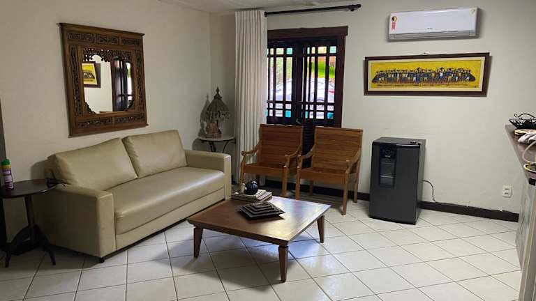 Das Vilarejo do Farol in Praia do Forte bietet eine ideale Unterkunft für einen entspannten Strandurlaub. Mit einem Außenpool, einem schönen Garten und einer 24-Stunden-Rezeption ist das Hotel perfekt ausgestattet, um Ihren Aufenthalt so angenehm wie möglich zu gestalten. Die Privatparkplätze stehen Ihnen kostenlos zur Verfügung. In der Umgebung gibt es zahlreiche Aktivitäten wie Wandern, Windsurfen und Tauchen, die Sie unternehmen können. Das klimatisierte Apartment verfügt über drei separate Schlafzimmer, ein Wohnzimmer und eine voll ausgestattete Küche mit Kühlschrank und Backofen. Handtücher und Bettwäsche können gegen Aufpreis gestellt werden. Genießen Sie die Sonne auf der Sonnenterrasse und besuchen Sie beliebte Sehenswürdigkeiten wie Praia do Aquario, Praia do Eco Resort und das Baleia Jubart Institute in der Nähe. Der internationale Flughafen Salvador ist nur 59 km entfernt.