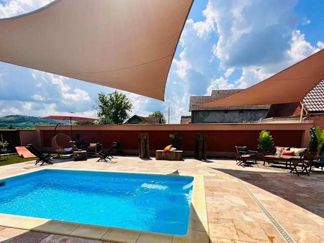 Die Villa 112 befindet sich in Dîrlos und bietet einen beeindruckenden Blick auf die umliegenden Berge. Die Lage ist ideal für Naturliebhaber, die die Ruhe und Schönheit der Landschaft genießen möchten. Die Festungskirchen Valea Viilor und Biertan sind nur eine kurze Autofahrt entfernt und bieten einen Einblick in die reiche Geschichte der Region. Der Flughafen Târgu Mureş ist gut erreichbar und ermöglicht eine bequeme Anreise.