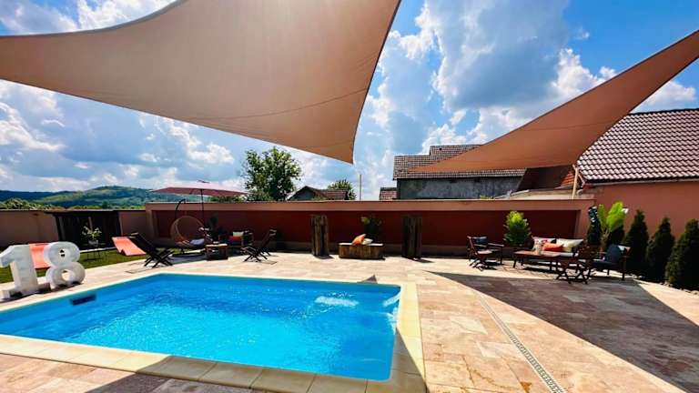 Die Villa 112 bietet einen saisonalen Außenpool, in dem Sie sich an warmen Tagen erfrischen können. Der Garten und die Terrasse laden zum Entspannen und Sonnenbaden ein. Für zusätzlichen Komfort steht ein Whirlpool zur Verfügung, in dem Sie sich nach einem ereignisreichen Tag entspannen können. Erkunden Sie die Umgebung und besuchen Sie die nahegelegenen Festungskirchen Valea Viilor und Biertan, um mehr über die Geschichte und Kultur der Region zu erfahren.