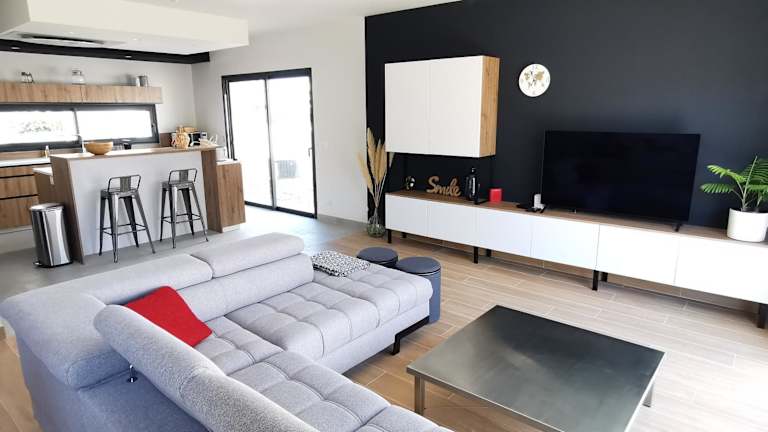 Die Villa umfasst 4 Schlafzimmer sowie ein Wohnzimmer und bietet Platz für eine komfortable Übernachtung. Die voll ausgestattete Küche ist mit einem Kühlschrank und einer Kaffeemaschine ausgestattet. Es gibt 3 Badezimmer, die jeweils mit einer Dusche und einem Haartrockner ausgestattet sind. Bettwäsche und Handtücher werden bereitgestellt und die Zimmer sind klimatisiert sowie schallisoliert.