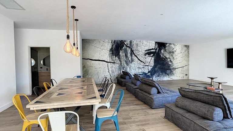 Die Unterkunft Villa 400m2 piscine intérieure très calme umfasst eine große Villa mit 400 m². Sie bietet eine Terrasse, einen eigenen Pool sowie einen Garten und verfügt über sichere Parkmöglichkeiten.