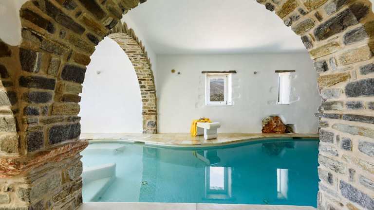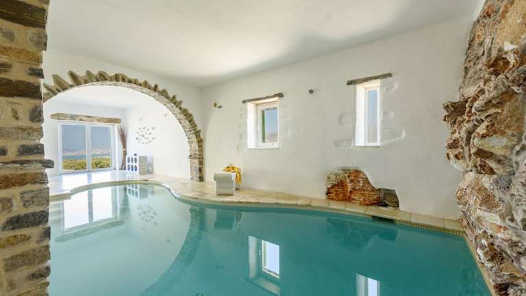 Genießen Sie den Außenpool der Villa und verbringen Sie erholsame Stunden im herrlichen Garten. Der Innenpool bietet Ihnen eine weitere Möglichkeit, sich zu entspannen und abzukühlen. Erkunden Sie die Umgebung und besuchen Sie den Strand Taverna Livadaki, der nur 2,8 km entfernt ist. Tauchen Sie ein in das kristallklare Wasser und genießen Sie die Ruhe und Schönheit der Umgebung.